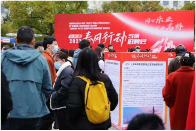 而在同时举行的2023年高桥镇春风行动专场招聘会上,来自上海金由氟材料股份有限公司、上海高桥捷派克石化工程建设有限公司等辖区内的40家用人单位参与现场招聘,提供销售经理、管理会计、供应链专员、人事行政助理等就业岗位600余个,吸引了不少求职者。活动现场还开展了退役军人创就业指导、劳动维权、政策咨询等服务。