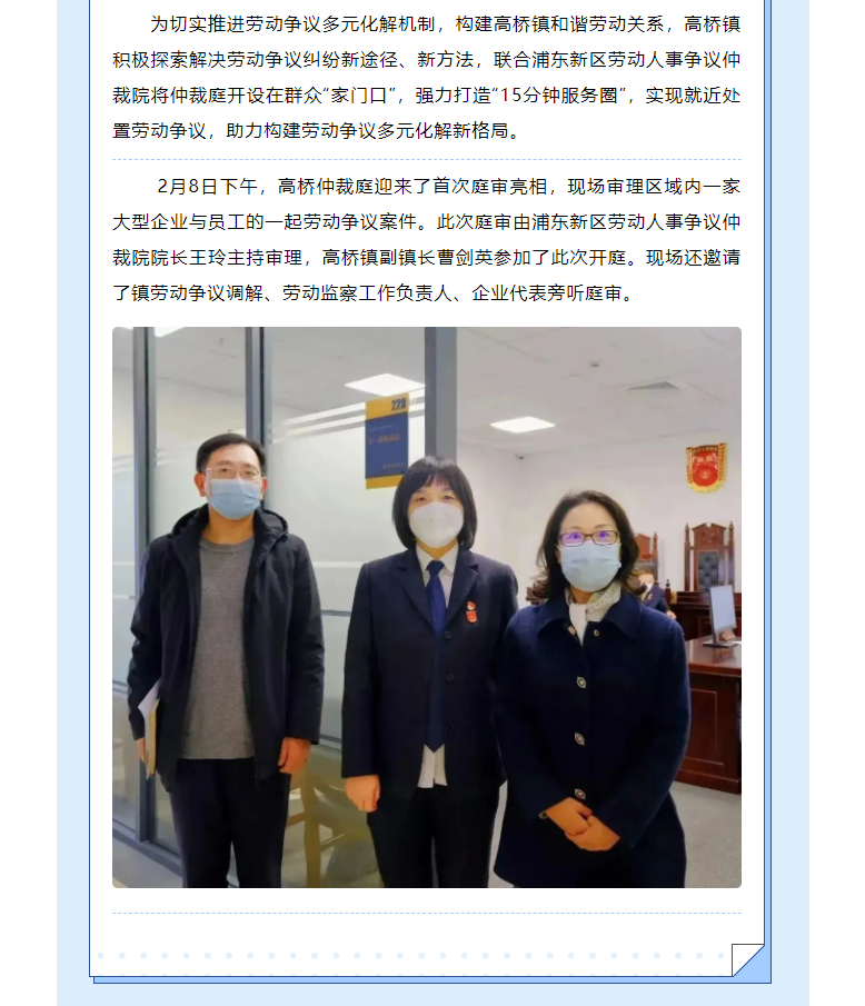 “家门口”就能开庭维权!高桥仲裁庭开出“第一庭”