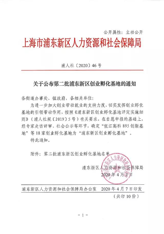近日,浦东新区人力资源和社会保障局发布了“浦东新区第二批创业孵化基地”名单,确定“张江高科895创新基地”等18家创业孵化基地为“浦东新区创业孵化基地”。