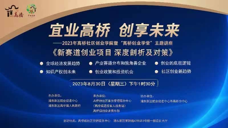 近日,“宜业高桥·创享未来——2023年高桥社区创业学院暨‘高桥创业学堂’系列主题讲座:新赛道创业项目深度剖析及对策”在镇社区党群服务中心启航大厅举行,激励广大青年释放创业热情、创新活力和创造潜能,为“创客”鼓与呼,让创业创新“火种”燃起燎原之势。活动采用“线上直播+线下交流”相结合的方式,30余位高桥镇社区创业园区、创业团队及创业者代表参加了线下活动。