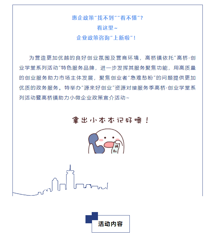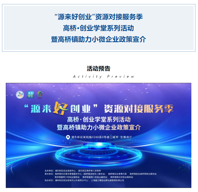 【宜业高桥|预告】@科技型企业,高桥创业学堂之企业政策宣介来啦,快来报名~